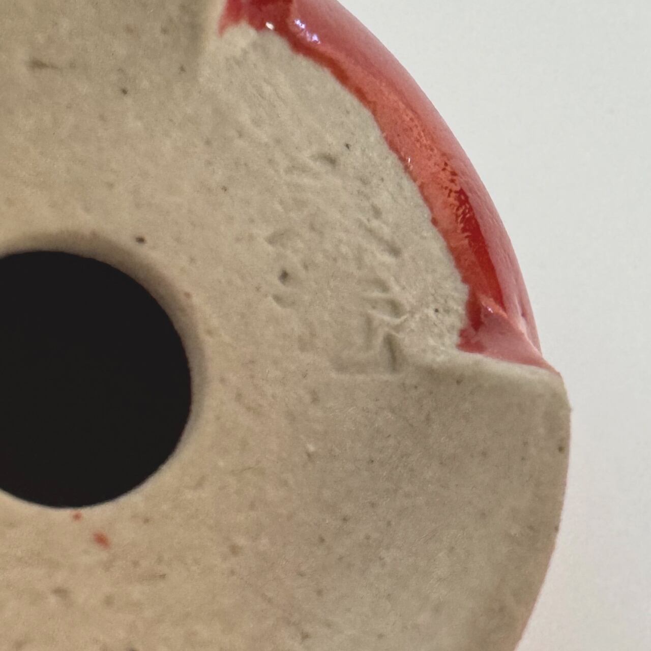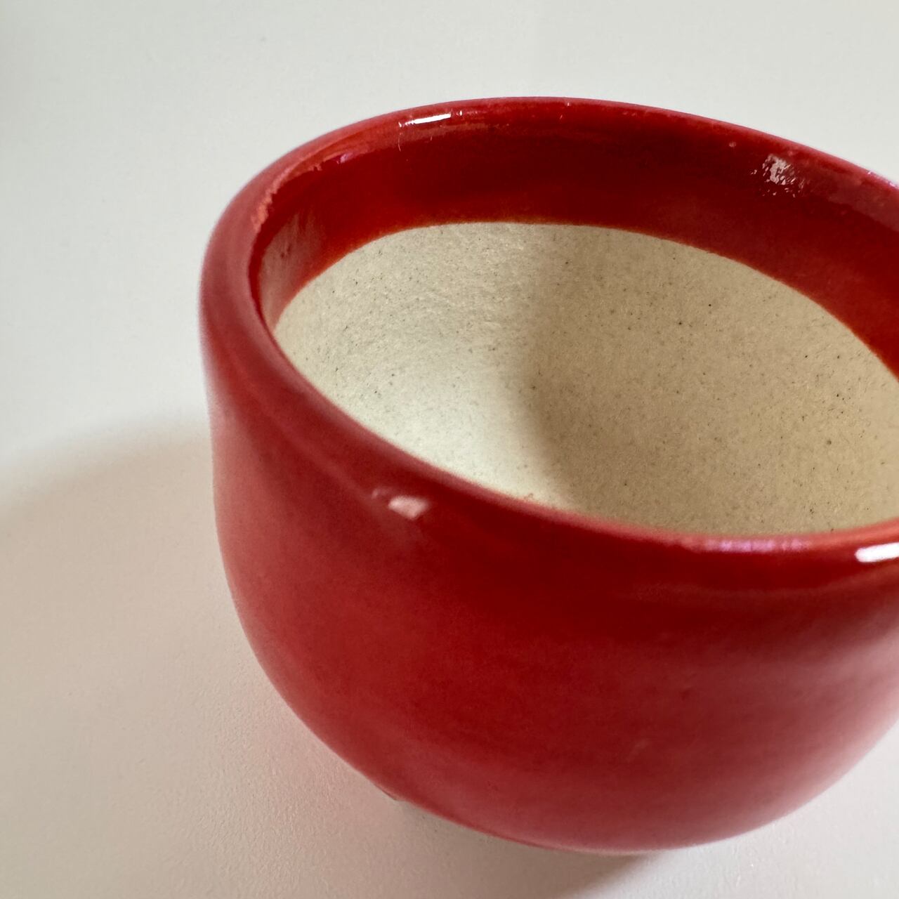 小さいながら存在感がある「BABY RED」。直径はペットボトルキャップの1.5倍ほど、正露丸のキャップと同じくらい。焼いたあとに一回り小さくなるとはいえ、ろくろを回しながら底が平たい鉢を手作りする指先の緊張感を想像してみて欲しい一品です。