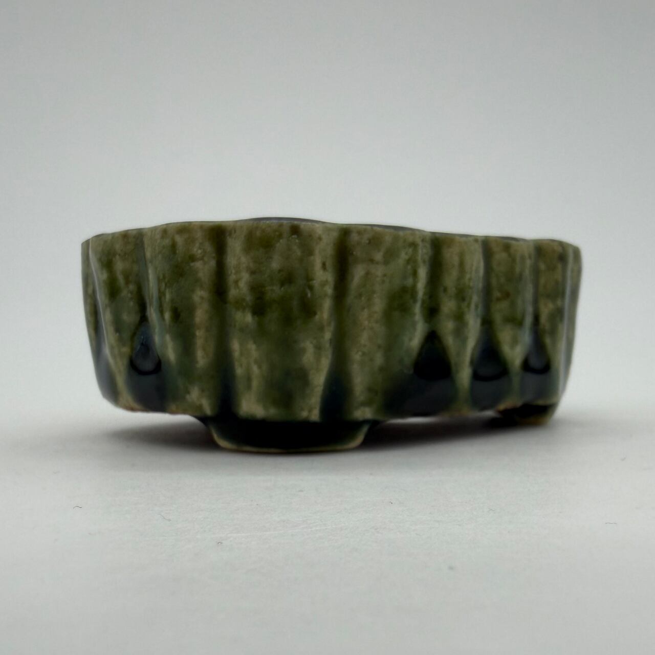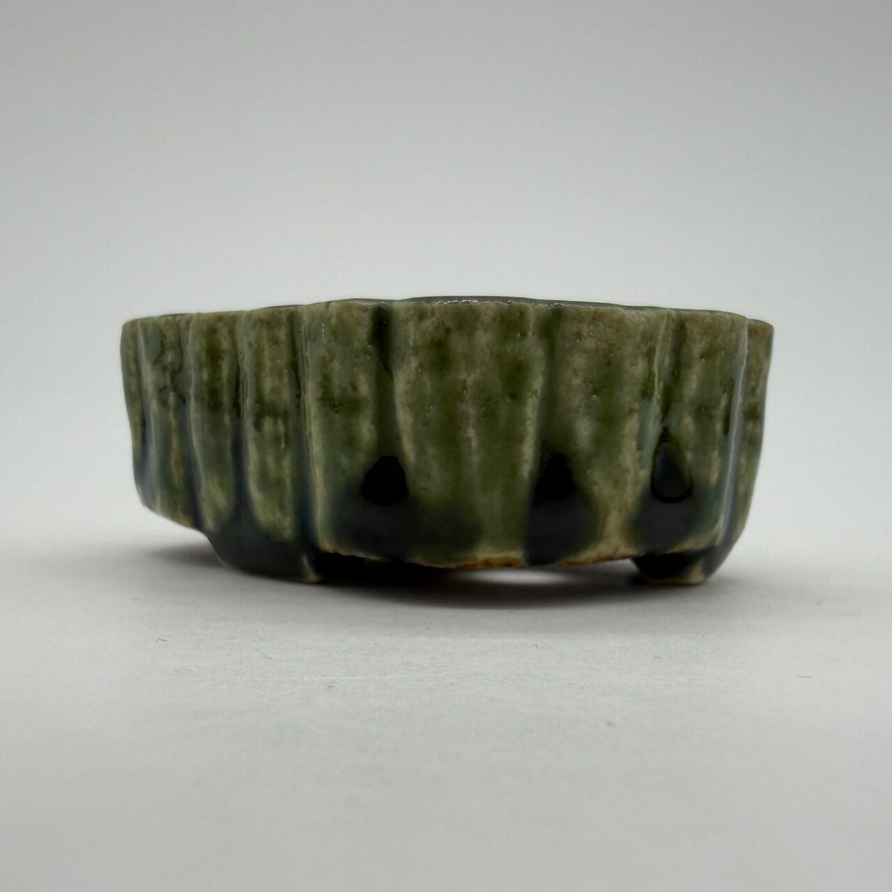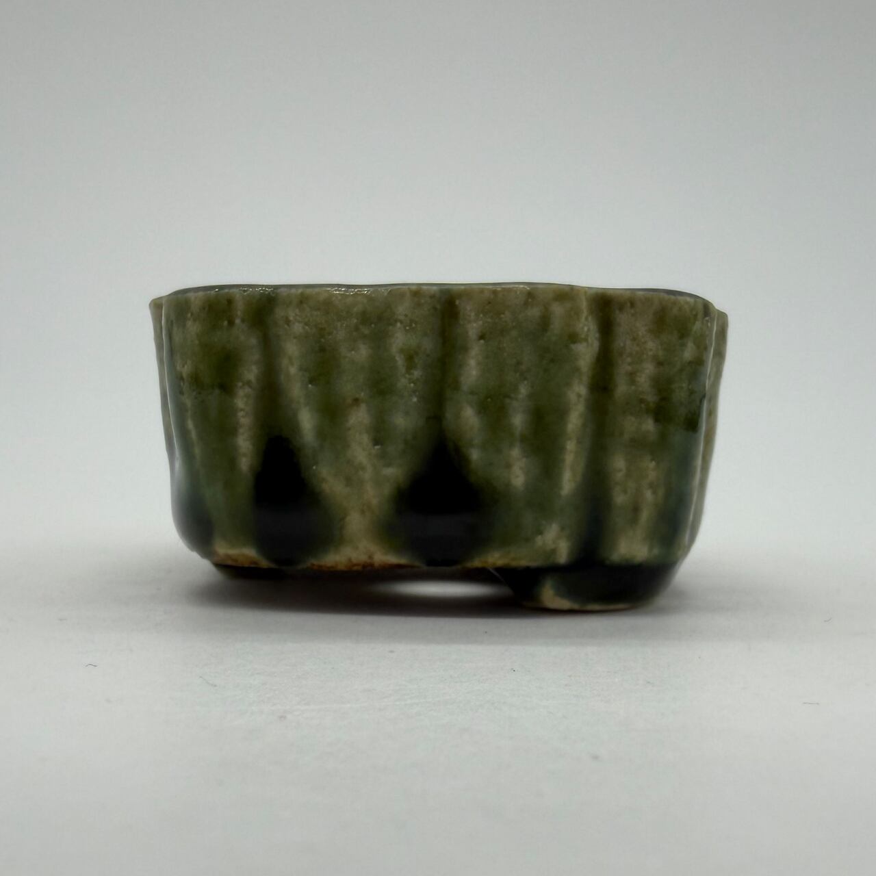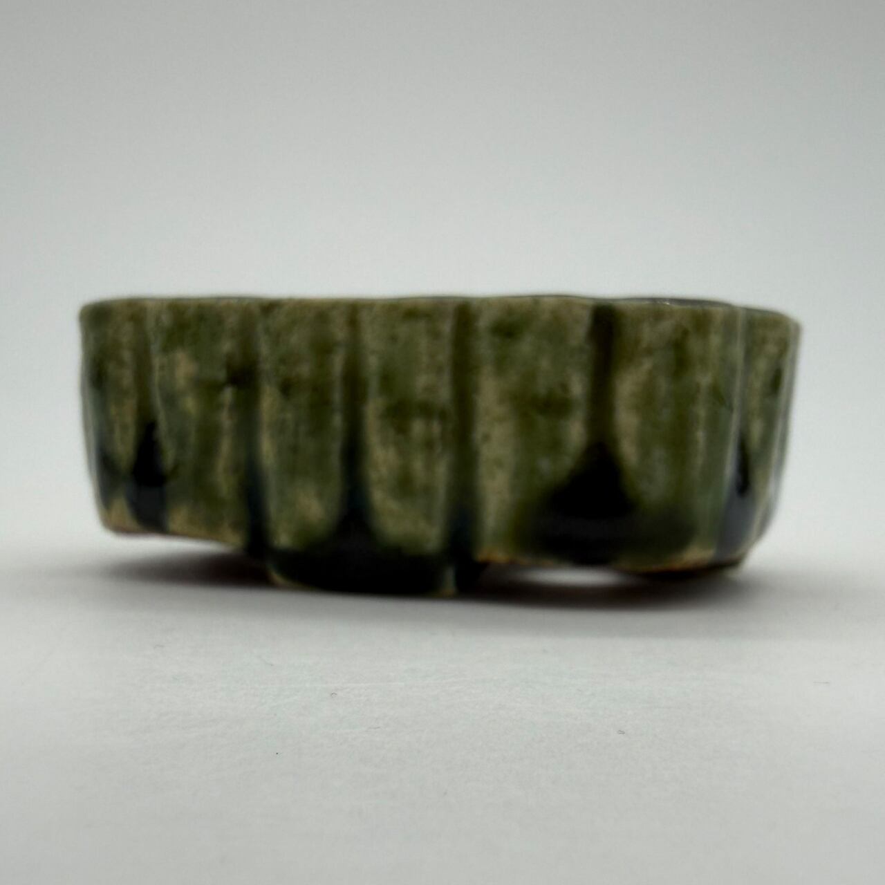 呂宋をまるごと楽しむ「RUSU BONSAI POT」。ポコポコっとした蒲鉾みたいな形で底穴は2つです。在庫は1つ限りです。この深い緑色は「呂宋」という焼き物の代表的な色で、浮世絵にみられる呂宋もこの色だし、「呂宋」を検索して出てくるのもこの色。見れば見るほど気になる魅惑の色。
