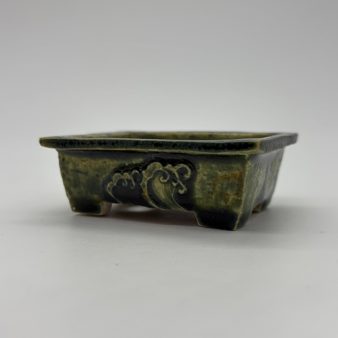 呂宋をかっこよく楽しむ「RUSU BONSAI POT」。一点ものです。この深い緑色は「呂宋」という焼き物の代表的な色で、浮世絵にみられる呂宋もこの色だし、「呂宋」を検索して出てくるのもこの色。見れば見るほど気になる魅惑の色。