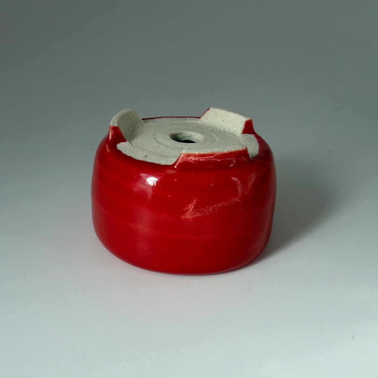 小さいながら存在感がある「BABY RED」。直径はペットボトルキャップの1.5倍ほど、正露丸のキャップと同じくらい。焼いたあとに一回り小さくなるとはいえ、ろくろを回しながら底が平たい鉢を手作りする指先の緊張感を想像してみて欲しい一品です。