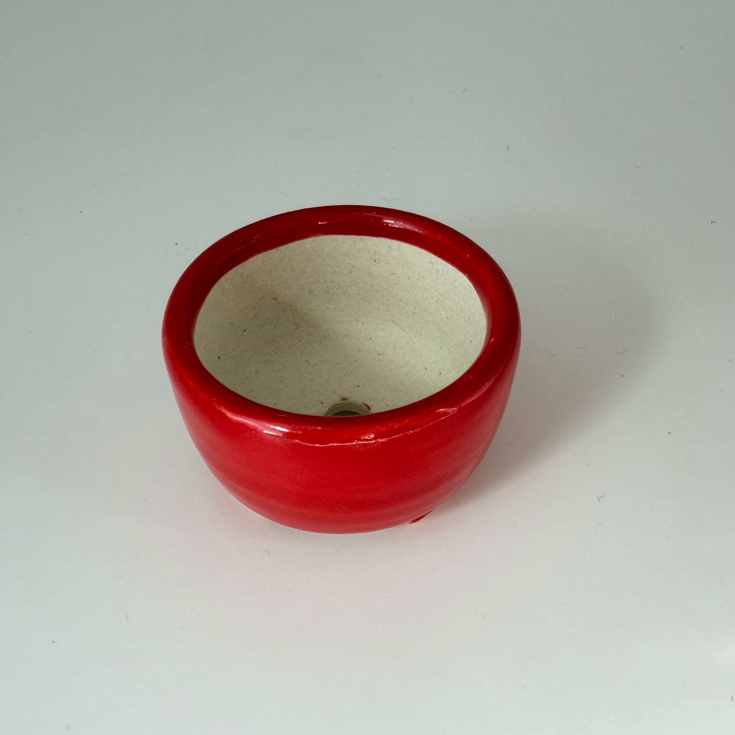 【盆栽鉢 / BONSAI POT】一点物 BABY RED - 丸型(ROUND) - Handmade - 作家/Artist:Tatsuya Kato